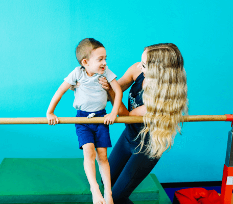 With a focus on whole child development, our classes mix silly warm-ups, new motor challenges, and social fun, all in a space designed just for them. Your child will make friends, have a coach who’s both knowledgeable and their favorite person, and tumble, jump, and roll their way to new skills. You’ll leave knowing you’ve provided the best childhood moments — leaving the couch bouncing behind! Your child’s giggles and ear-to-ear grins are waiting! At GymUTots, we know what kids love: gymnastics that’s just right — full of fun, learning, and endless smiles!