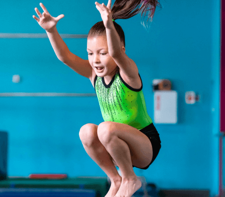 Our school age tumbling program focuses on advancing your child’s tumbling abilities with a targeted and comprehensive approach. With a specialized curriculum that covers everything from foundational skills to advanced techniques like tucks and twisting, children will experience progressions that provide an ongoing challenge. Our coaches emphasize proper technique and safety, ensuring each child can master new skills with confidence.