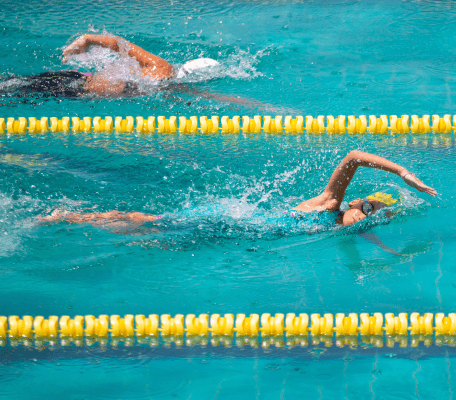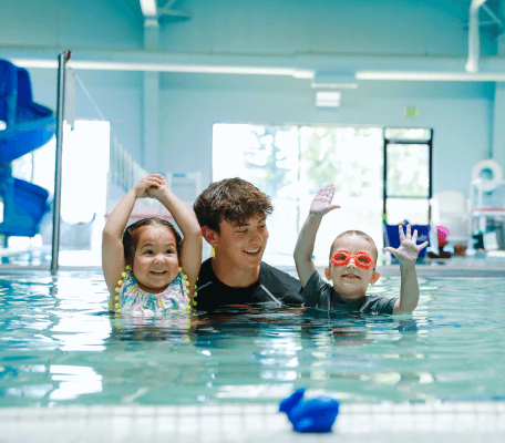 Our school-age swimming program is designed to help children become strong, confident swimmers through structured, level-based instruction. With small class sizes (4:1 student-to-instructor ratio) and 30-minute sessions, each lesson focuses on skill drills, stroke refinement, water safety education, and fun activities to keep students engaged. Parents love our program because of its strong emphasis on swimming proficiency, comprehensive curriculum, and experienced coaching team. We teach proper stroke mechanics and water safety principles, ensuring a well-rounded swimming education. Our supportive and enjoyable learning environment equips children with all skills needed for a lifetime of swimming.