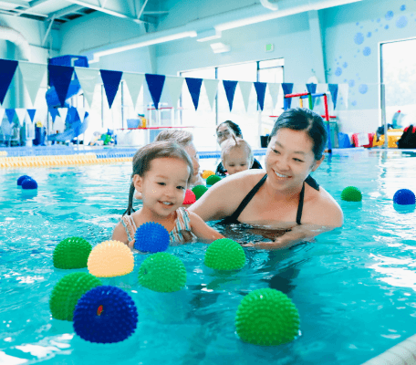 Splish, splash, and smile! Our Water Smart Babies program uses a gentle, child centered approach to make water safety second nature. Our parent child swim classes create a fun and comforting environment with familiar songs, bubbles, and bright teaching tools to help little ones feel at ease in the water. Through repetition and routine, children build confidence and essential swimming skills, while hands-on instruction empowers parents to guide their child’s learning. Our warm, clean, and closely monitored pools provide a familiar and safe experience. By integrating both skill based and sensory learning, we focus on whole child development, ensuring each child gains water safety awareness in a way that nurtures their growth and confidence. We’re here to make water safety second nature, where tiny toes kick, little hands splash, and big milestones are made.