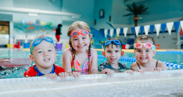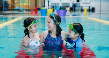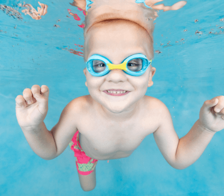 The Preschool Swimming program is designed for children aged 3 to 4 years old.